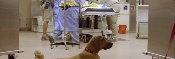 And they say cats and dogs don’t get along. Raina, a female Rhodesian ridgeback puppy, showed her dedication to her perhaps unlikely best friend, a male cheetah cub named Ruuxa, when Ruuxa underwent surgery on his legs. Raina waits anxiously as her friend, Ruuxa the cheetah, undergoes surgery on his legs.