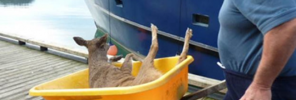 Tom Satre makes his living spotting whales, dolphins, and other Alaskan wildlife to show those on board his tour boats, but just when he thought he had seen it all, he saw something amazing. Tom came across four young deer swimming in the cold water. Satre and his family were