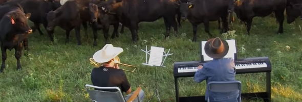 Not long ago, farmer Derek Klingenberg posted a special video on the web in which cows stole whole spotlight. Together with his mother, he took care of playing the piano and the trombone in the pasture, and the response of the cows impressed many animal lovers. It is scientifically