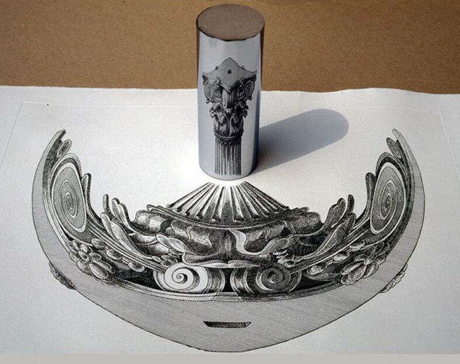 That’s because they can only be seen in their true form when you place a mirrored cylinder in front of them. Suddenly they come to life in a way you might not expect. Just check them out, and prepare to have your mind blown.
