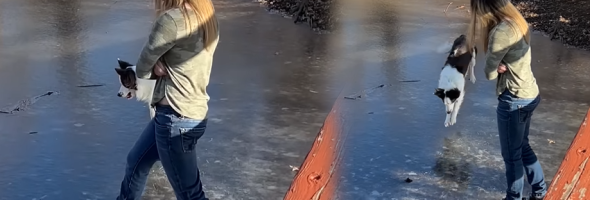 Advertisement Recently, a video from the United States of America appeared on the Internet, where you can watch a cute scene with a dog. A border collie jumped into a frozen lake with his owner, surprising many animal lovers with his feat. The video, which appeared on the YouTube
