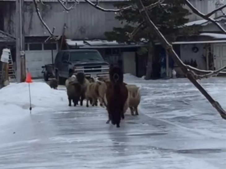 Sheep Start Running On Icy Street, Watch The Hilarious Moment They Realize Road Is Too Slippery