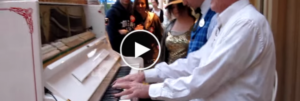 When Jonny May and Johnny Hodges began to play a freestyle boogie-woogie-style song, they had no idea they were going to draw a huge crowd and eventually get over 100,000 YouTube views! Working perfectly in tangent with each other on the piano, while in Anaheim’s Disneyland, these two talented gentlemen
