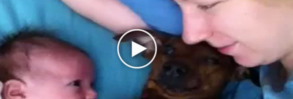 You’re about to watch the ultimate anecdote to sadness. YouTube user hulagirl2008 posted the following video, and I’ve seriously watched it three times now. This lucky mom is enjoying a “snoozing morning” with her baby and puppy — and it’s the cutest cuddle puddle I’ve ever seen! She recorded