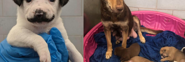 A few weeks ago, Hearts & Bones Rescue organization brought a stray Shepherd mix to Dallas Animal Services. The stray recently gave birth to 11 adorable puppies, and with just one look everyone knew there was something special about one of them, who had prominent black markings on her