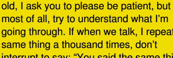 A mother isn’t just a woman who gives birth. For many children their mother covers many roles like teacher, caregiver, and friend. So when the roles are reversed later in life, it’s important to keep those memories alive. Read this letter, written from an aging mother to her daughter.