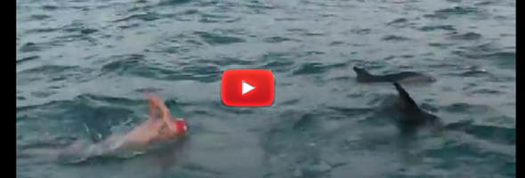 British competitive swimmer Adam Walker was swimming through New Zealand waters last Tuesday when he noticed a 7-foot shark directly beneath him. The creature decided not to attack, however, after approximately 10 dolphins surrounded Walker, swimming right along with him for over an hour. They came so close at